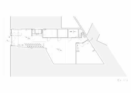 L’organisation du lieux comprend une zone d’accueil et de bureau dans la partie en connexion avec la rue et une zone réservée à la production dans la partie arrière sous la toiture principale.